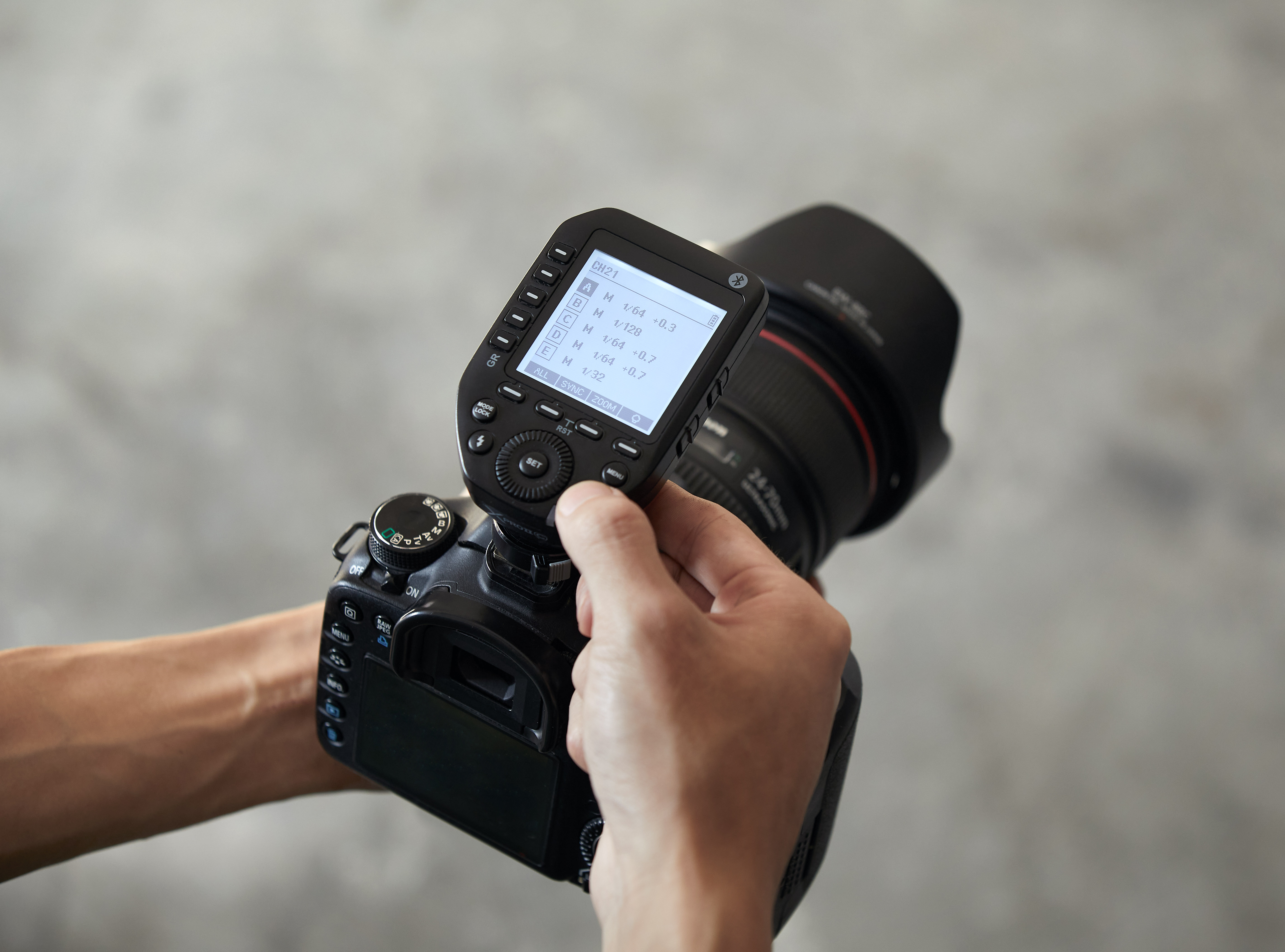 In addition, the transmitter provides Bluetooth connectivity for wireless control. This requires the Godox Photo App must be installed on a compatible iPhone or Android smartphone or tablet, which can be used to make numerous settings conveniently.